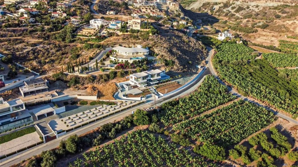 Stunning panoramic views delivered in the comfort of this beautiful privately gated home. Perched on a hill, you have a bird’s eye view, stretching from all along the coast of Paphos to Akamas bay. Each room delivers a view where you can take in the beautiful surroundings and sea views! This villa features 6 bedrooms plus office/cinema room, 9 bathrooms, large spacious two living areas, two dining areas in a 730sq.m internal living space. Offering you luxurious natural finishes throughout: top spec tiles, worktops, bespoke kitchen, elevator, false ceilings and much more!