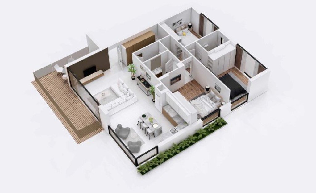 Below, 6 exquisite three-bedroom luxury apartments are found with large balconies offering unlimited natural light.