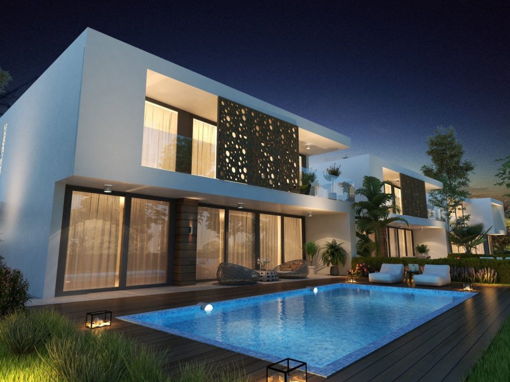 3 modern, spacious luxury residences in Kalithea, just 5 km from the center of Nicosia. Each of the villas layout can be modified to meet individual needs. A fresh, modern style is carried through to the exterior gardens and private pools of each residence.