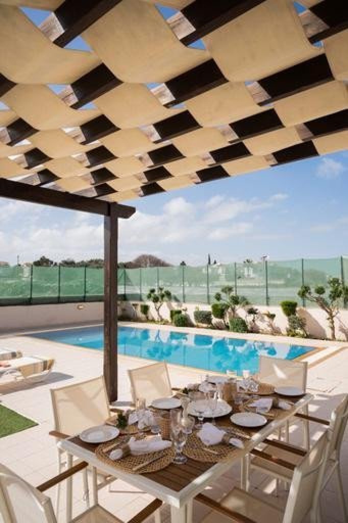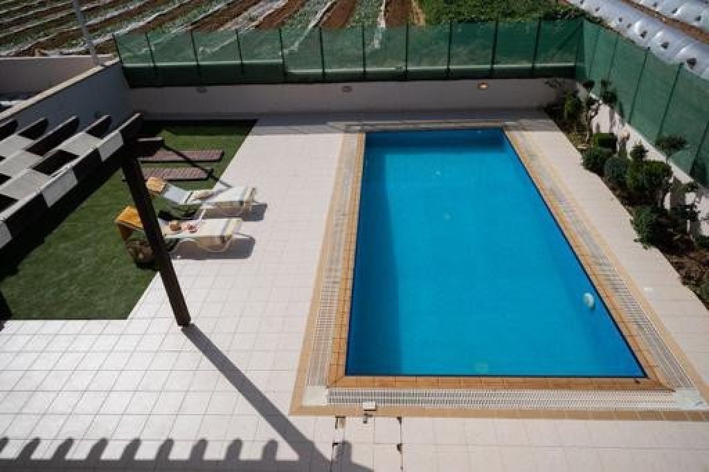 A stunning 4 bedroom Villa located in Pernera area, Paralimni. This Villa belongs to a privately gated Luxury Villas Complex and it is the biggest of all the villas in the Complex, with a covered area of 186sqm! Starting, it is consisted of 2 floors, on the ground floor there is a living room, a dining room, a kitchen, a kitchenette, and a guest toilet. Following, on the 1st floor, we have the master bedroom with a private balcony and an en-suite bathroom, a second room with an en-suite and a kitchenette, 2 more bedrooms, and a bathroom-W/C for the last two bedrooms. Finally, on the second floor of 20sqm, we have a roof terrace which offers more than amazing views of the picturesque area.