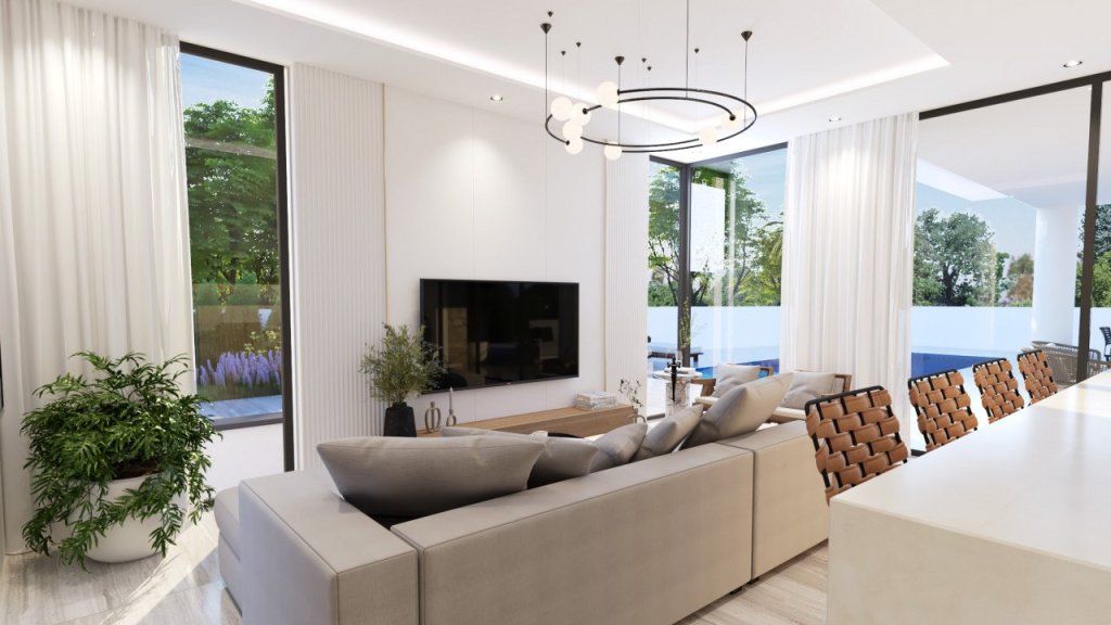 A total of 5 Grand Villas are located in an exclusive and private area. There are 2 different type of Design, all at the same level of creativity and modernism, with the total plot size ranging from 315sqm to 400sqm. Each of the residencies benefits of 2 levels and offers an open plan kitchen-dining room, a living room and 3 or 4 bedrooms. As for the outside, the villas are making the outside living much easier, giving easy access to the exterior areas. You cannot miss the barbeque by the private –infinity- swimming pool which is surrounded by the green scenery that the area is offering. All the villas have a huge, covered space pf 70sqm and a massive roof garden of 50 sqm.