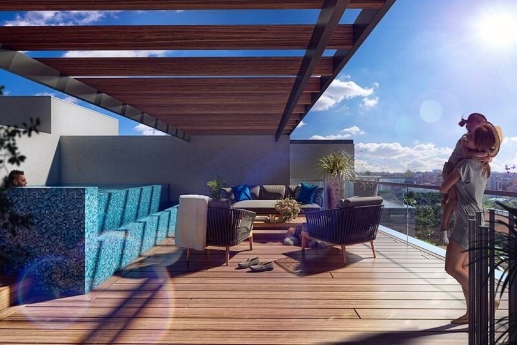 The penthouses with private roof terraces and pools enjoy a stunning city view.