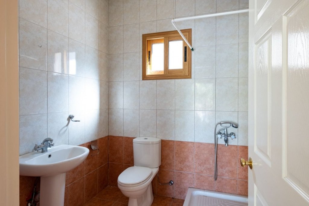 The first floor consists of two bedrooms, one of them with en-suite toilet with a shower. The building is air conditioned (split unit appliances), and a fireplace is installed. It enjoys the use of a yard with a private swimming pool and a garden.