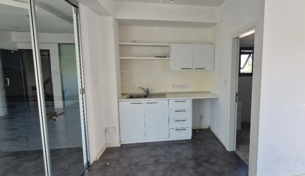The office offers 2 marble-finished toilets, 3 balconies (one overlooking Makarios Avenue), and abundant natural light.