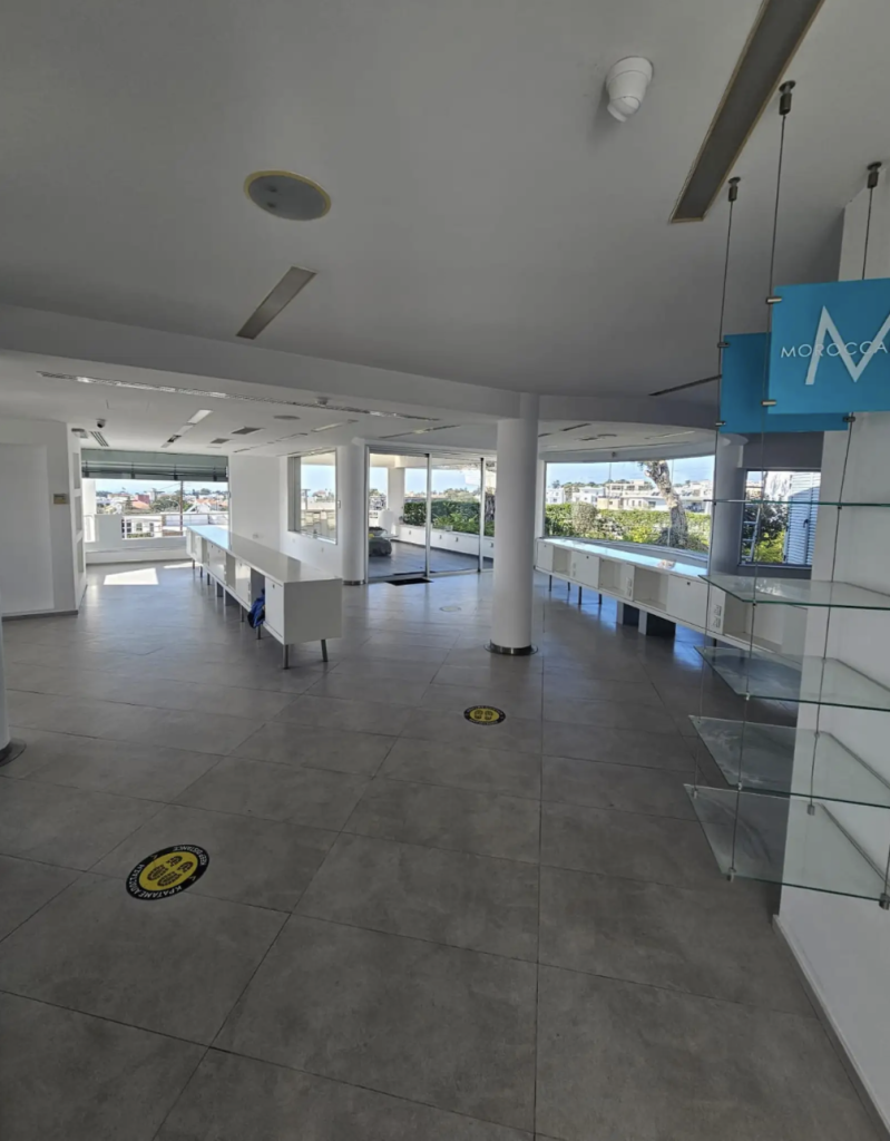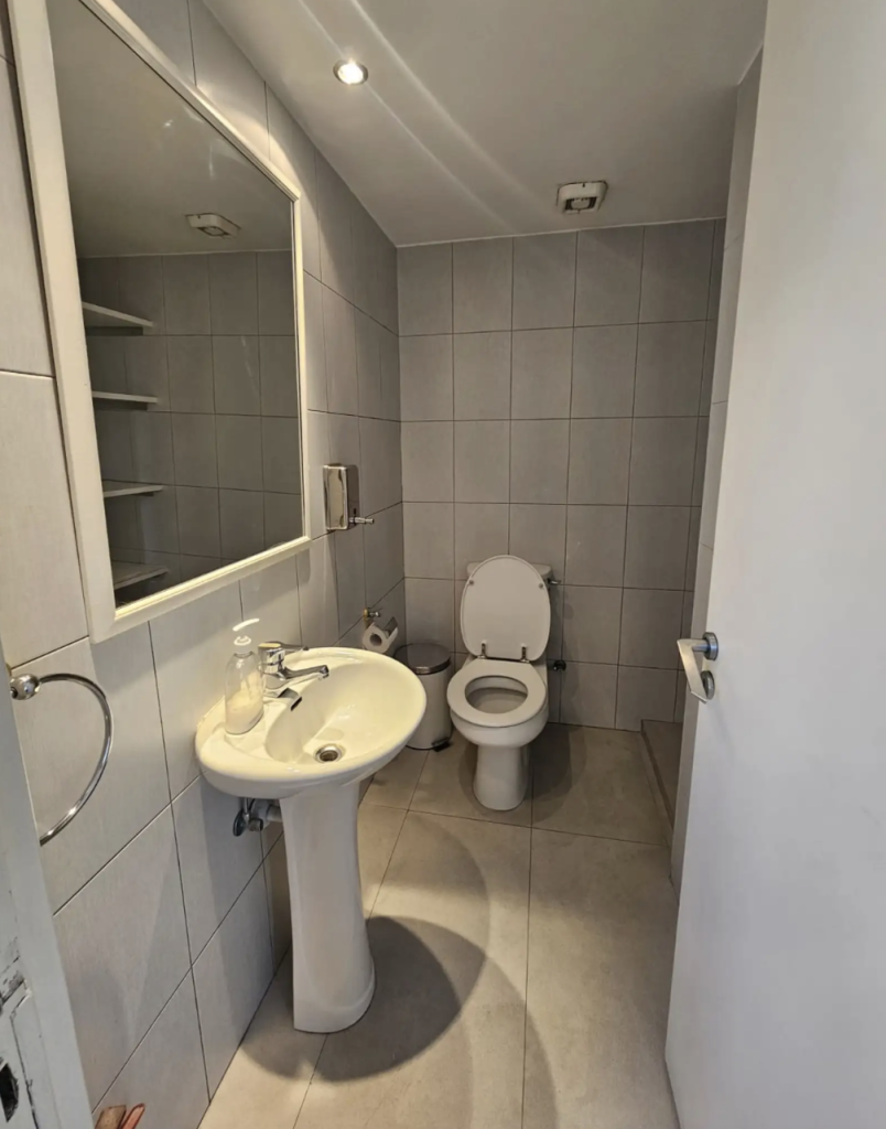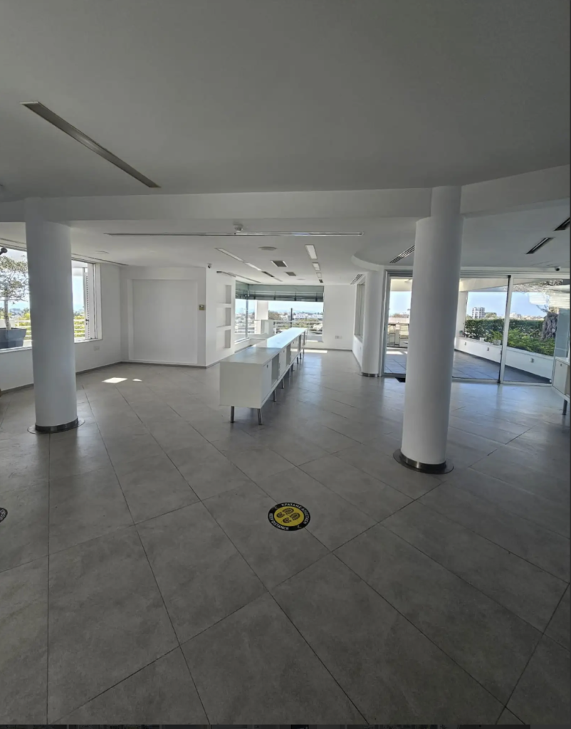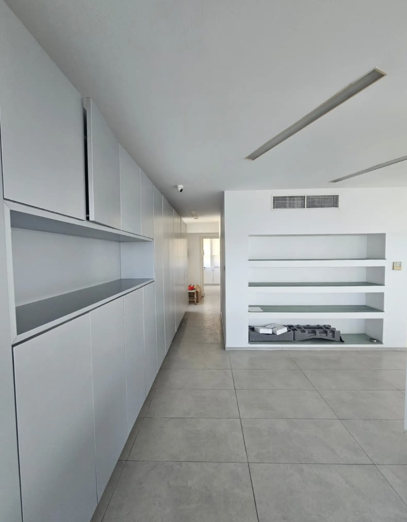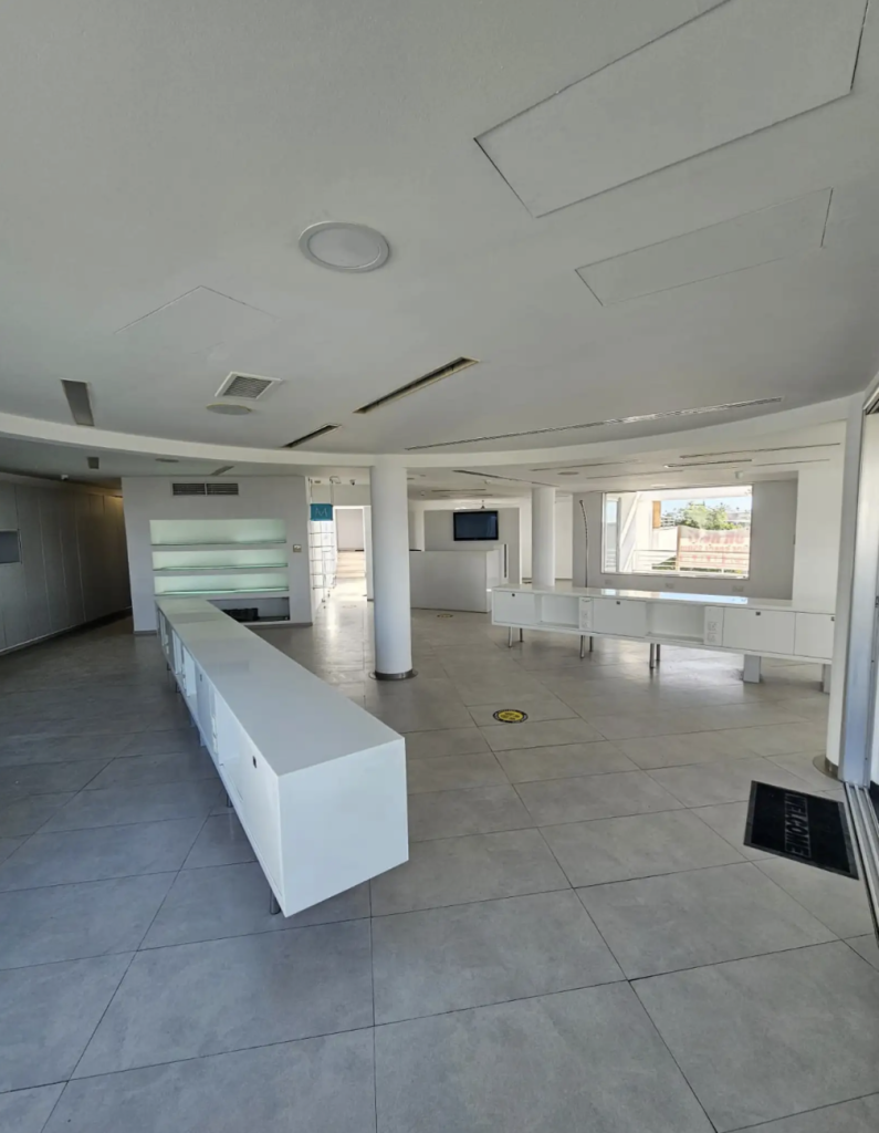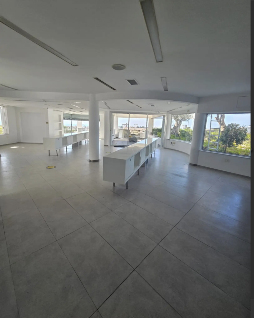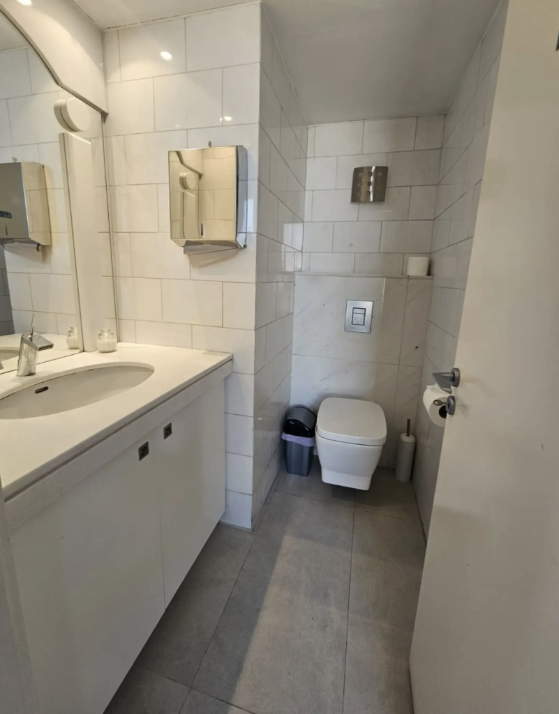This modern office space for rent offers a well-designed open-plan layout with a fully equipped kitchen and two toilets, providing comfort and functionality for everyday business operations.