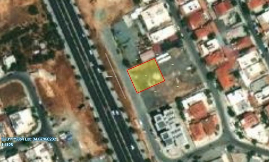 For sale a commercial plot in Kato Polemidia, Limassol. It’s located at the distance 17 meters from Omonias street, 1100 meters from the highway and 2200 meters from the sea. It has square shape, flat surface and frontage with the street 21 meters. It falls into commercial zone Εβ with building density 140%, coverage 50%, 4 floors, 14.3 meters.