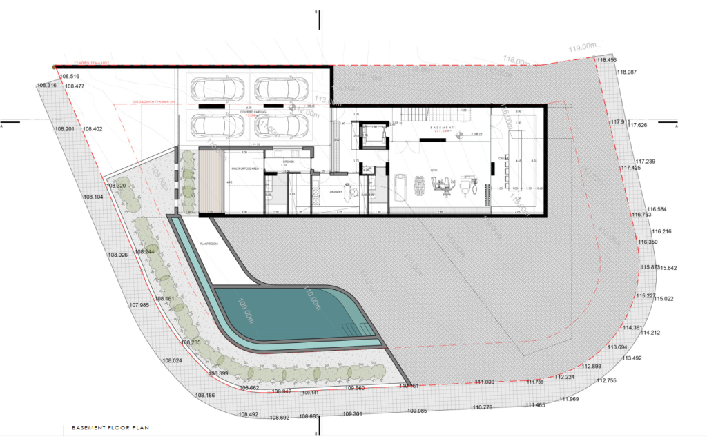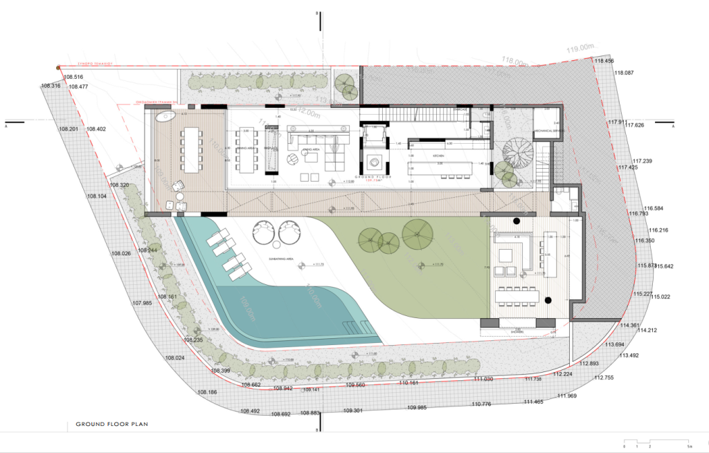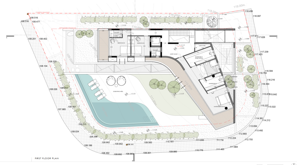 A nice shaped big plot with plans and permits for a bespoke design Villa organized in four(4) floors. Its unique geometry is adaptive to the unobstracted views to the city coastline, and the challenging landscape characteristics. Suitable for the needs of a family and at the same time suitable for a single exclusive Client.